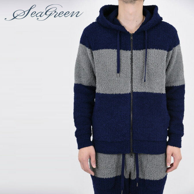 Seagreen シーグリーン KIKITO メンズ パーカー 長袖 ジップアップ ダブルジップ ボーダー パイル モコモコ セットアップ 吸水性 ポリエステル バイカラー 1-4 S-XL